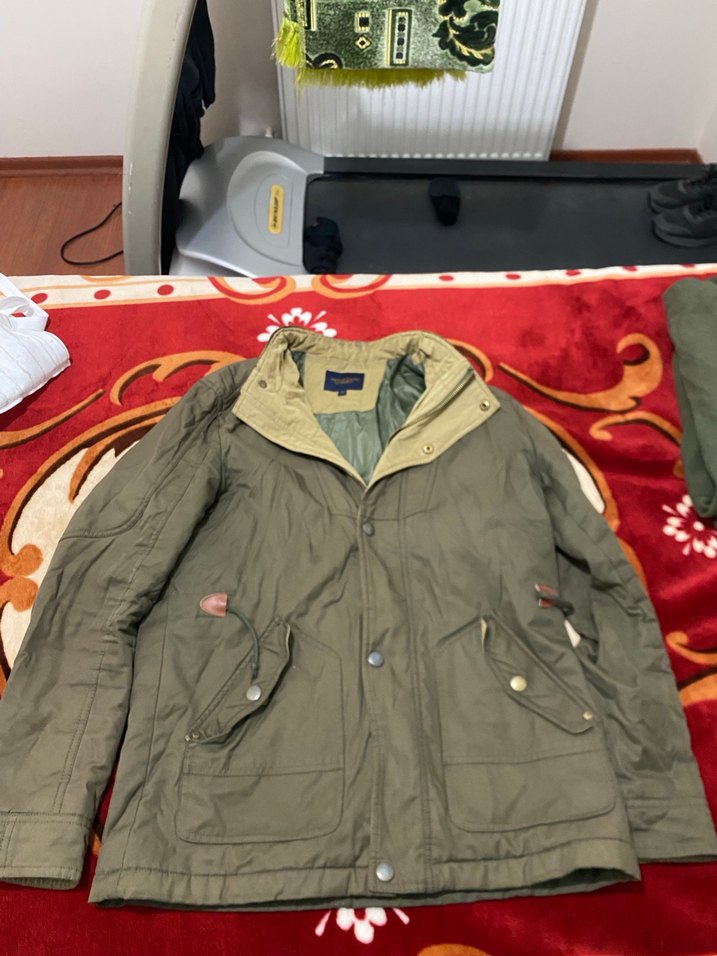 Hatemoğlu Düğmeli, normal uzunlukta haki yeşil erkek mont. Uzun kollu, kesik yaka ve rahat kesimdir. Yumuşak ve sıcak kumaştan yapılmıştır.