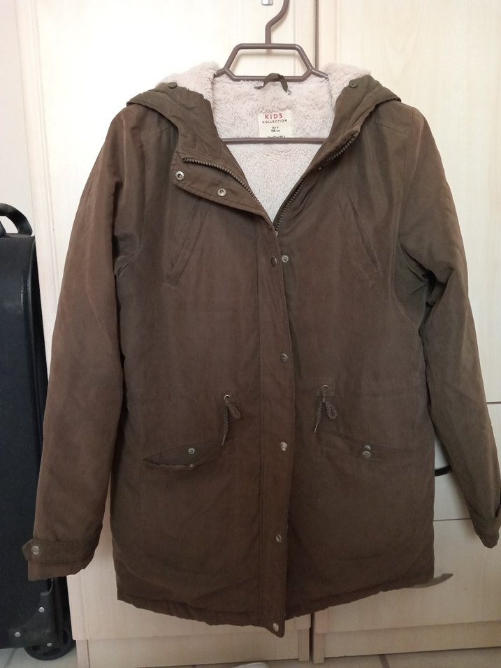 haki yeşili süet malzemeden yapılmış, düğmeli ve uzun kollu, rahat kesimli kaban. Notlu yakası ve içi sıcak tutan astarıyla günlük kullanıma uygundur.