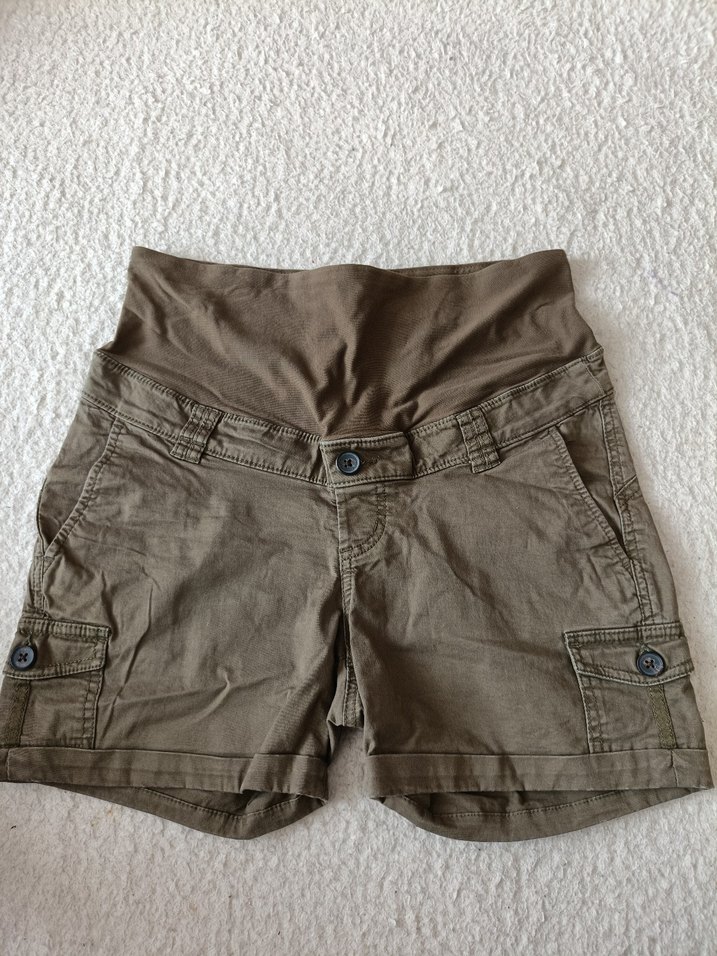 Düğmeli hamile mini şort, rahat kesimi ve yumuşak keten kumaşıyla dikkat çeker. Rahat yüksek bel bandı sayesinde dış mekan kullanımı için uygundur.