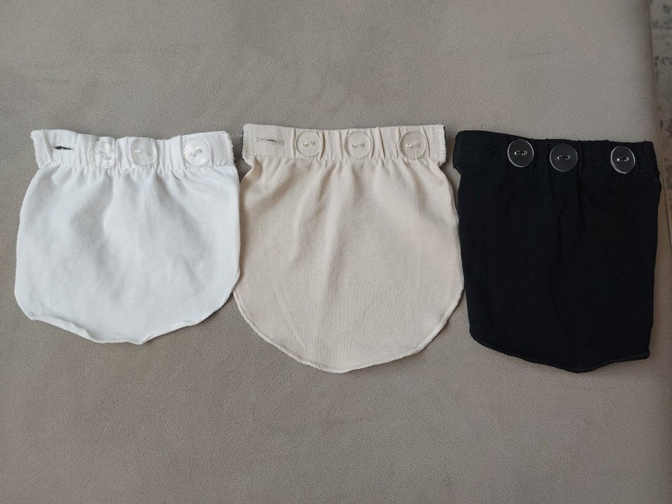 Hamilelikte pantolon belini uzatmak icin kullanilan aparat. beyaz ve krem olan birkac kez kullanildi siyah hic kullanilmadi yikandi ütülendi. 3lu fiyatidir