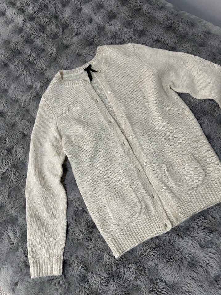 Simli renkli, düğmeli ve cepli örme hırka. Uzun kollu, yuvarlak yakalı ve bol kesimdir. Midi boyda, rahat kullanıma uygundur.