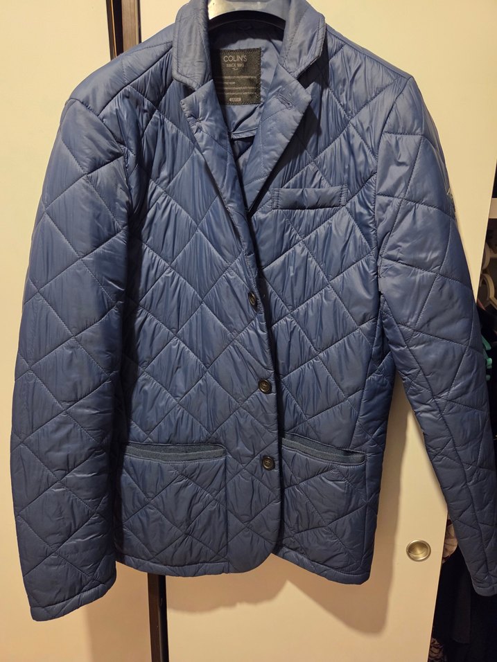 colins Düğmeli, mavi renk erkek ceket tarzı mevsimlik. ceket yaka, uzun kollu ve normal boyda, rahat kesimle günlük sokak stili için uygundur.