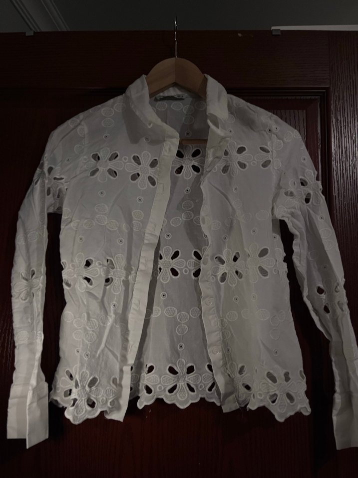 Düğmeli İşlemeli Beyaz Kadın Gömlek