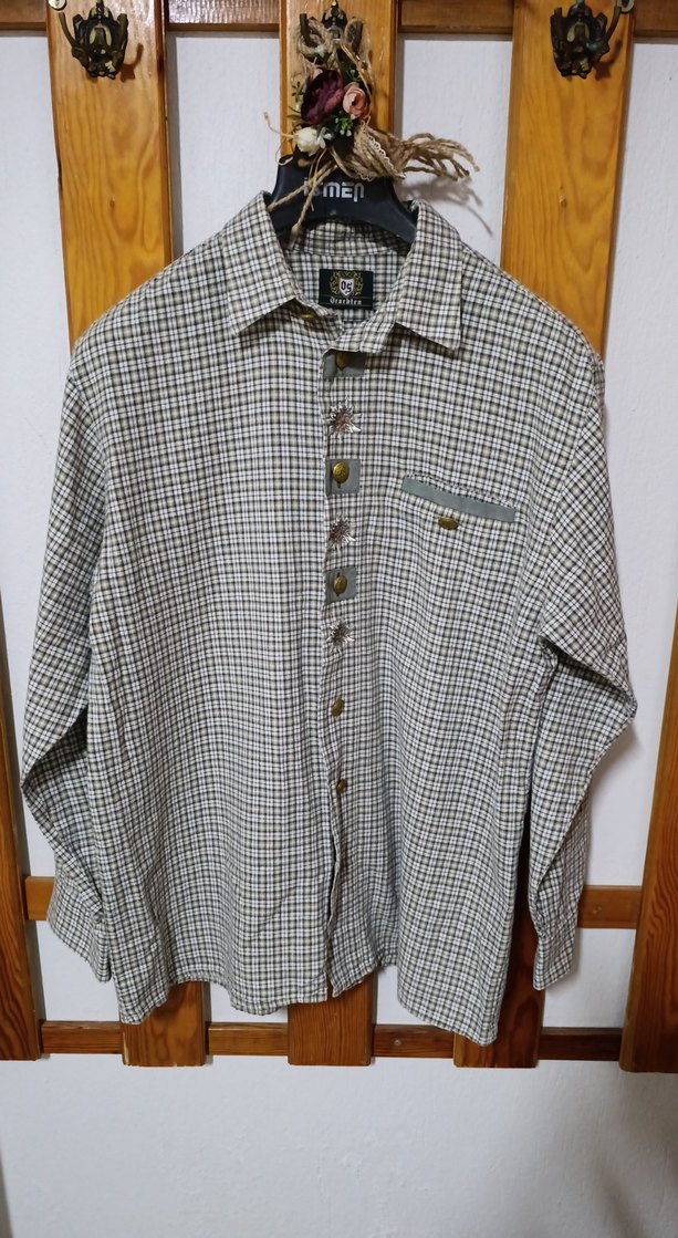 Gri renk, uzun kollu, düğmeli ve notched lapel yakalı pamuk kadın gömleği. Rahat kesim, günlük kullanıma uygundur.