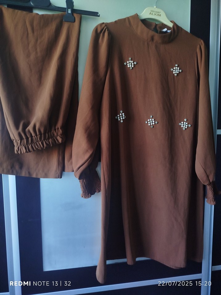 Uzun, bol kesim kadın tunik; ipeksi kumaş, işlemeli desenler ve düğmeli detaylar içerir. Uzun kollu ve yuvarlak yakalı, minimalist normcore tarzında. Günlük kullanıma uygun. 22/07/2025