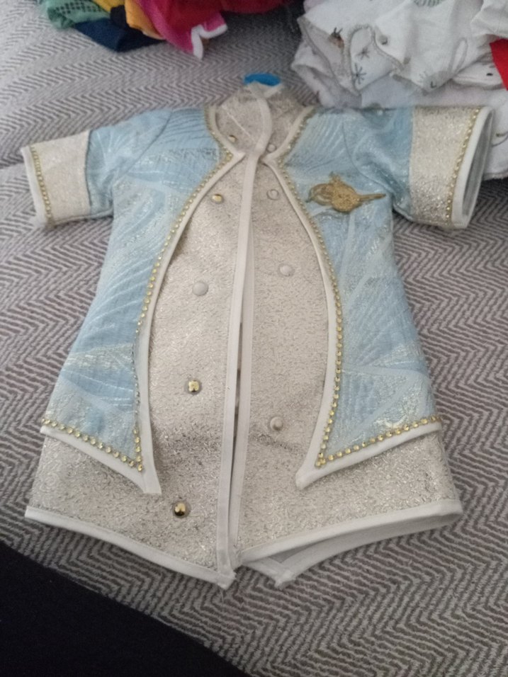 Düğmeli, işlemeli ve kısa kollu bu erkek çocuk takımı, modest ve kesimli yapısıyla notlu yaka detayına sahiptir. Beyaz ve gri tonlardadır.