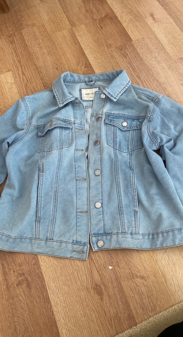 Açık mavi denimden uzun kollu, düğmeli ve bol kesim kadın ceket. Notlu yaka ve cep detaylarıyla günlük sokak tarzına uygun.