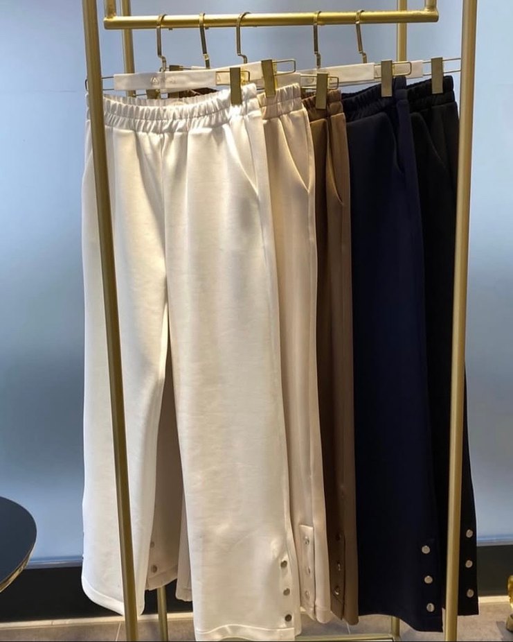 Düğmeli detaylara sahip, rahat kesim kadın kumaş pantolonlar. Sentetik kumaştan, çoklu açık renk seçenekleriyle günlük sokak tarzına uygun. Bej rengi mevcuttur görselden 2. Sorunsuzdur kenarları çıtçıtlıdır açılabilir