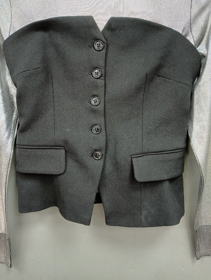 Düğmeli ve kesik yaka detaylı, siyah renkte, kadın yelek. Ofis kullanımı için uygun, normal kesim ve kolsuz tasarım.spor ve klasik kombin yapılabilecek bir ürün.