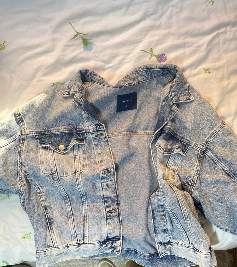Düğmeli, uzun kollu, salaş kesim ve çentikli yakalı bu kadın denim ceket, gri-mavi renkte ve normal boydadır. Sokak modasına uygun, günlük kullanıma elverişlidir.