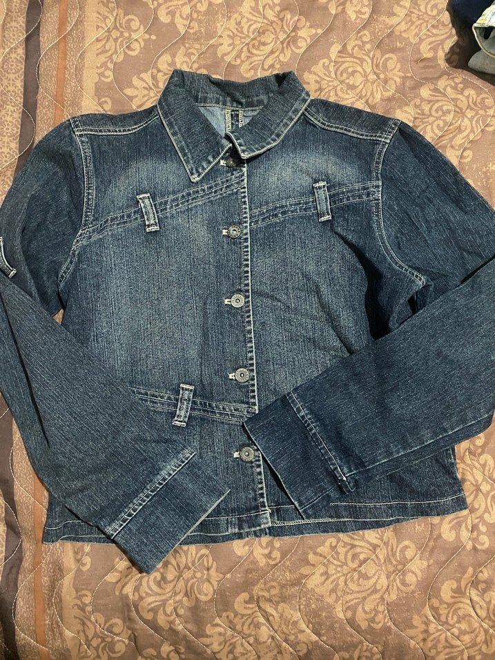 Düğmeli, uzun kollu ve normal boyda, fitted kesim kadın denim ceket. Lacivert-gri tonlarda, desen içermeyen ve gündelik kullanıma uygun. Uzunluk 50 cm Eni 50 Cm