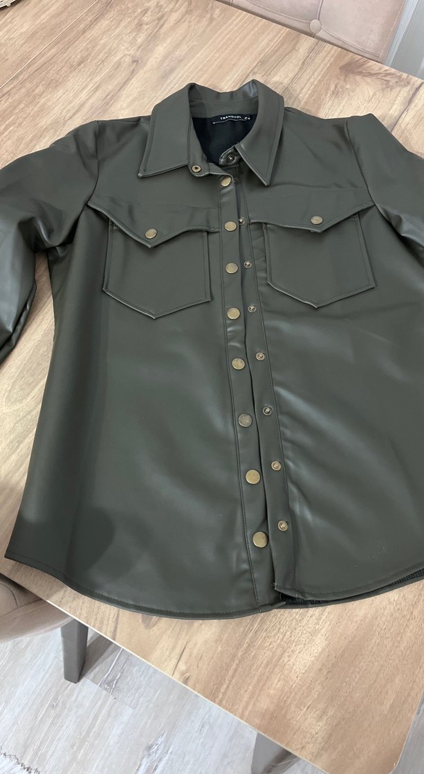 Düğmeli Kadın Deri Ceket Gri