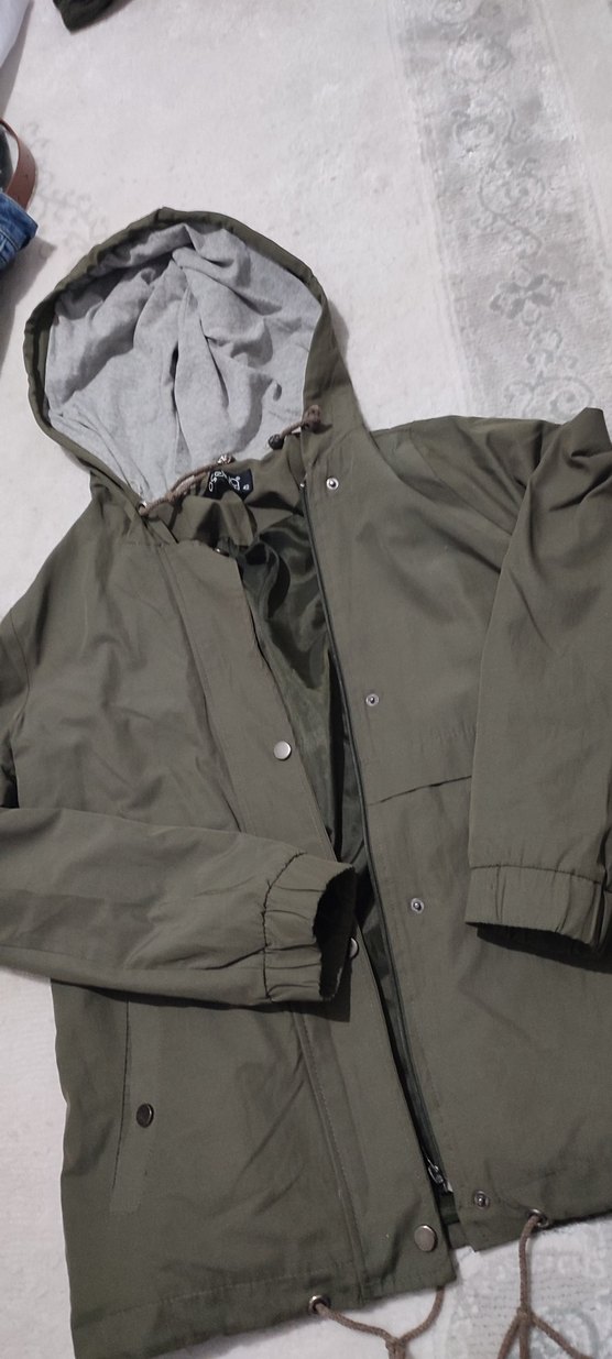 Düğmeli kadın Gri Kapüşonlu Yağmurluk