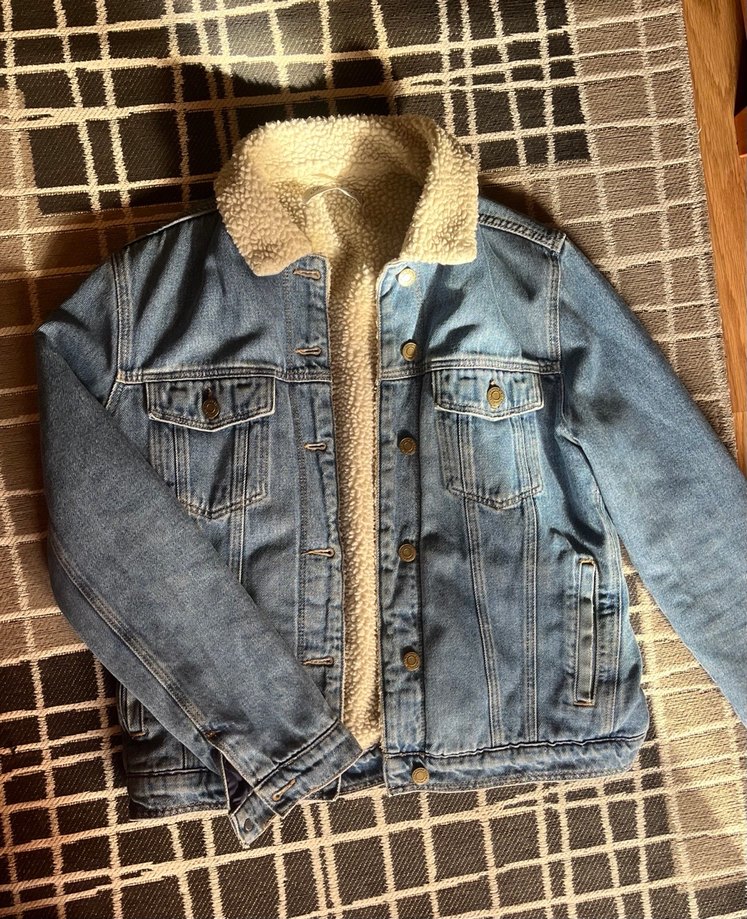 Düğmeli ön ve yaka kısmında sıcak astarlı,kadın kot ceket, günlük sokak giyimi için uygundur.