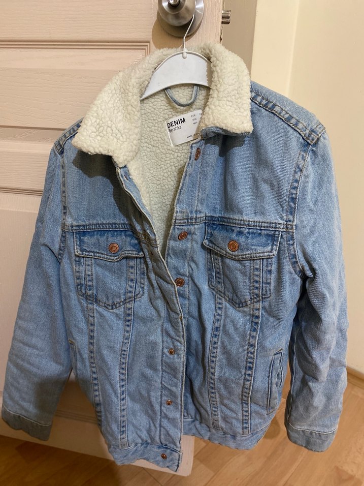 Düğmeli, içi yumuşak astarlı kadın kot ceket. Rahat kesim, notched lapel yaka ve midi boy. Günlük kullanıma uygun uzun kollu mavi kot ceket.