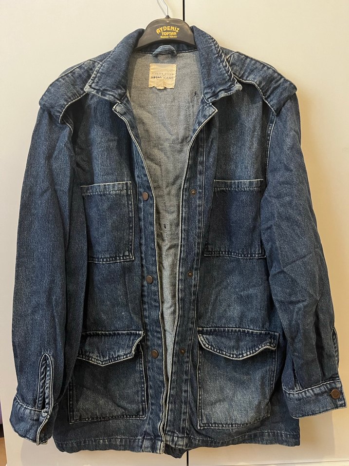 Düğmeli, uzun kollu, salaş kesim kadın kot ceket. Midi boy ve çıtçıtlı, notlu yaka detayıyla günlük rahat stil sunar. Mavi renkte kot kumaş.