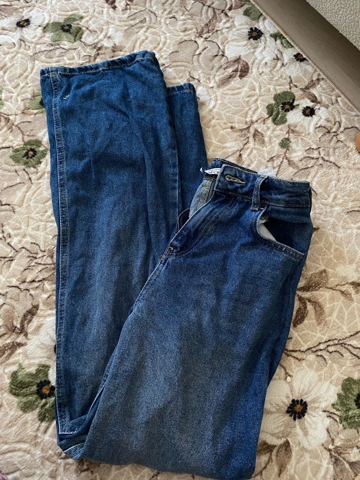 Düğmeli, rahat kesim kadın kot pantolon, mavi-gri tonlarında denim kumaştan. Normal midi boyda, desen içermeyen sade tasarım, günlük kullanım için uygundur.