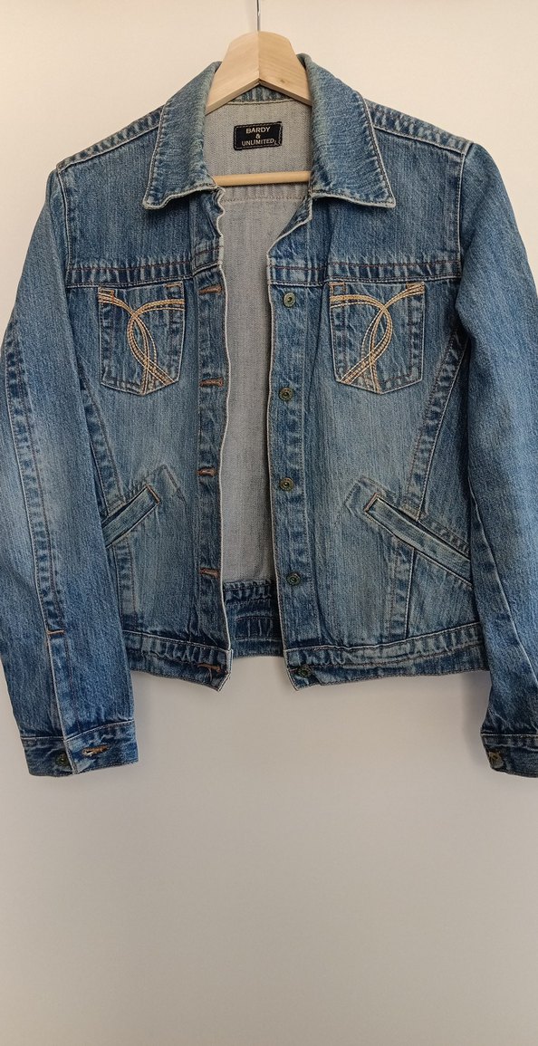 Düğmeli, uzun kollu ve normal boyda, mavi tonlarında kadın denim cekettir. Notched lapel yaka ve dekoratif cep işlemeleri bulunur. Günlük kullanıma uygundur.