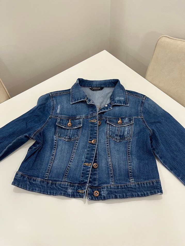 Bu dar kesim kadın denim ceket, düğmeli ve yakasında kesik detay bulunur. Uzun kollu, normal boyda ve parlak mavi renktedir. Günlük ve şık sokak tarzı için uygundur.