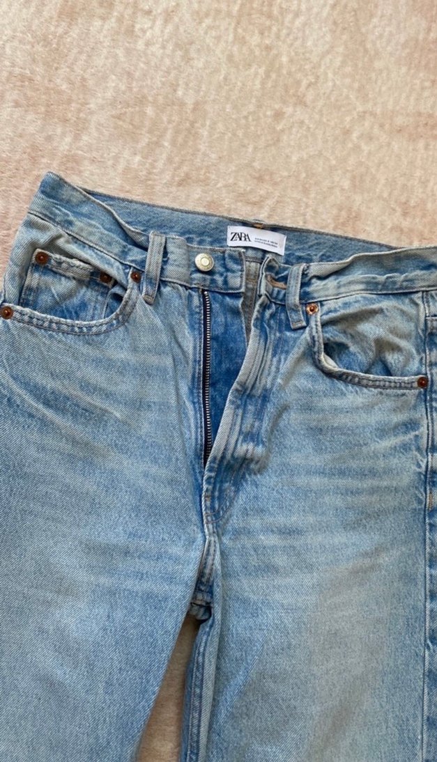 Düğmeli ön kısmı olan, mavi renkte, regular fit kadın denim pantolon. Günlük kullanıma uygun, orta boy, normcore tarzda rahat kesim jeans.