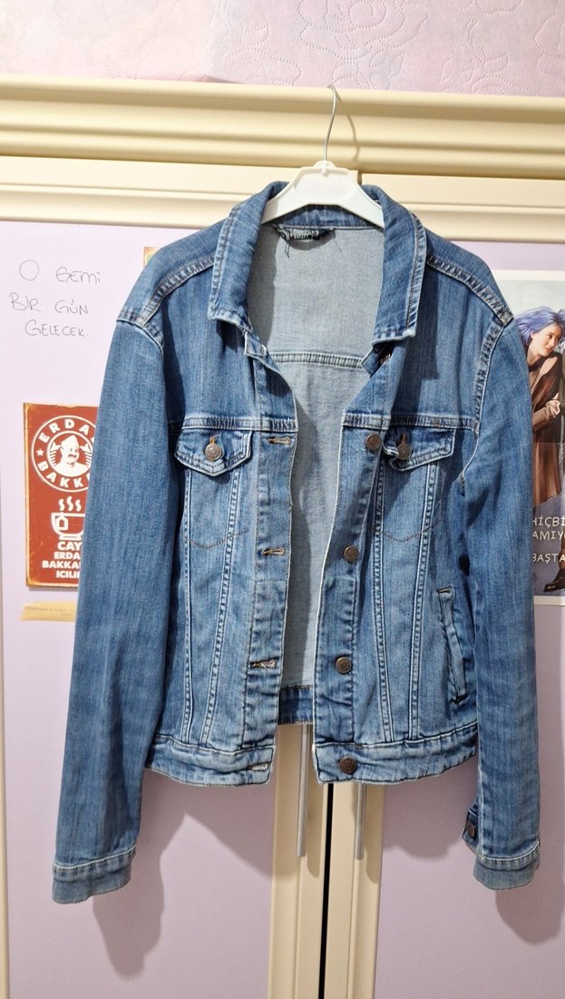Düğmeli Kadın Mavi Jean Ceket