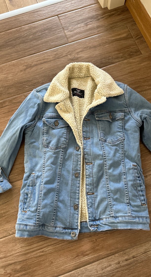 Düğmeli, fitted kesim kadın kot ceket, notched yaka ve uzun kollu. İç kısmı sıcak tutan astarlı, parlak mavi renkte, günlük kullanıma uygun.