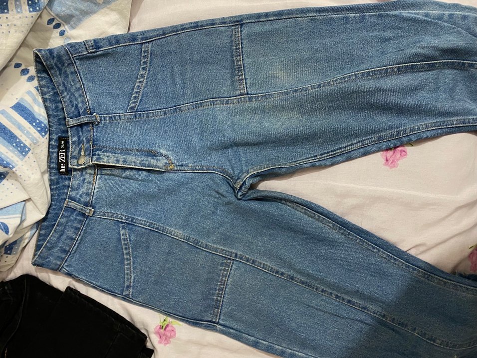 Düğmeli, fitted kesim, pastel mavi renkte kot pantolon. Normal midi boy, gündelik rahat kullanıma uygun kalıbı çok iyi