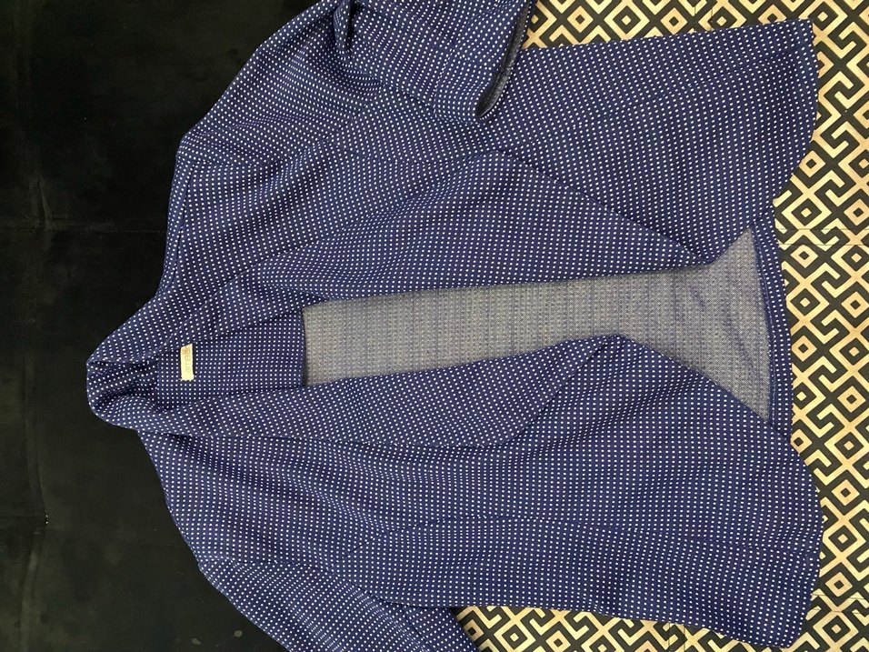 Kadınlar için düğmeli, sentetik kumaştan yapılmış mavi ve gri detaylı sokak stiline uygun wrap.