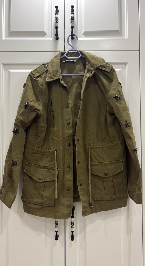 Düğmeli Kadın Midi Boy Kamuflaj Ceket