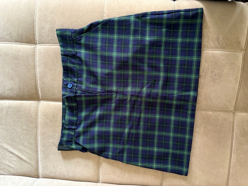 Kadınlar için düğmeli, koyu çok renkli kareli desenli midi etek. Sentetik kumaştan, rahat kesim ve ofis ya da günlük kullanım için uygundur.