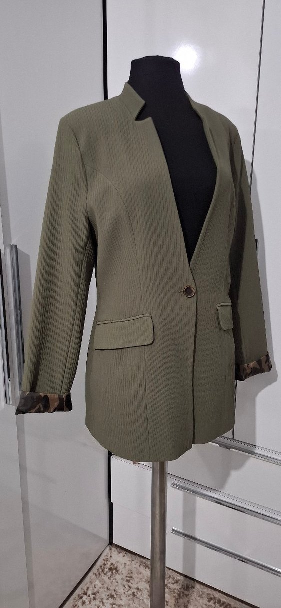 Düğmeli Kadın Midi Haki Blazer Ceket