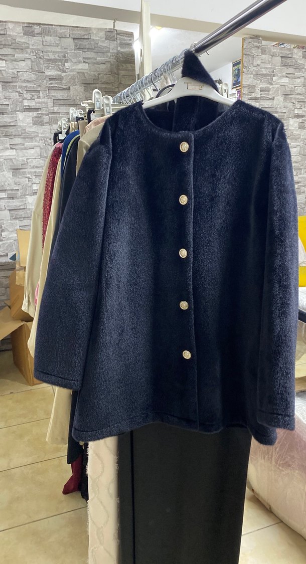 Düğmeli, yumuşak ve sıcak kumaştan üretilmiş, normal kesim midi boy uzun kollu kadın kaban. Koyu mavi renkte ve sade tasarımlı, rahat kullanıma uygun. 56 cm eni 76 boyu55 cm kolu