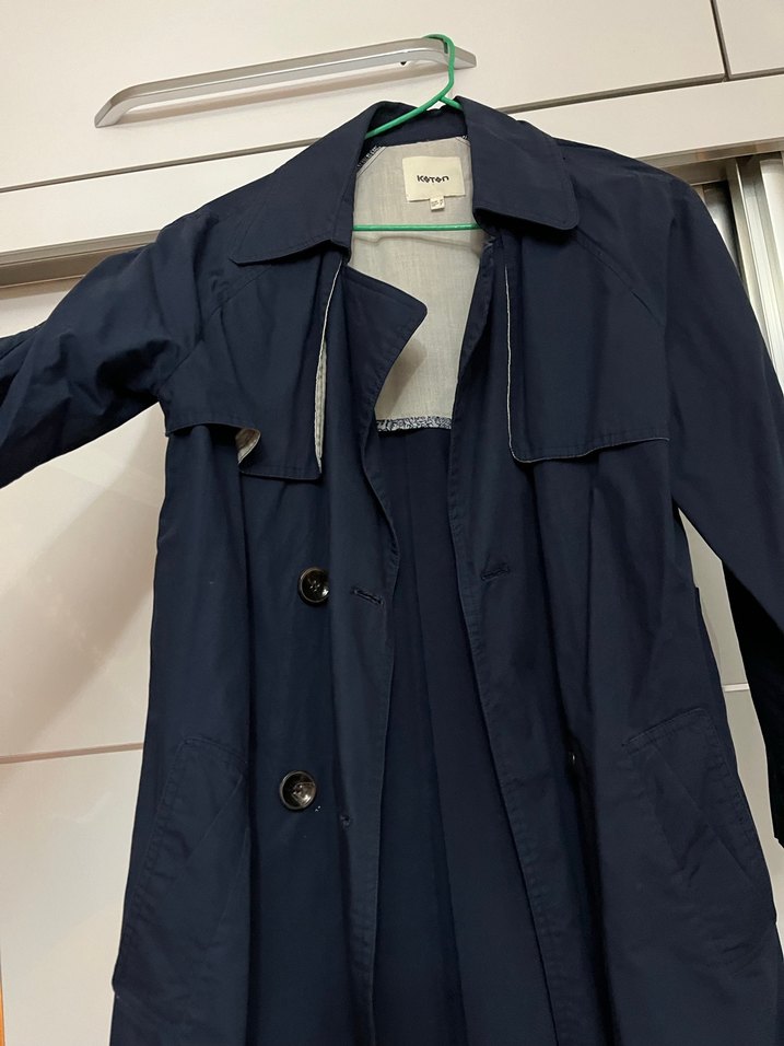 Lacivert kadın midi trençkot, düğmeli ve uzun kollu. Regular kesim, notched lapel yakalı, sentetik kumaştan günlük kullanım için uygun. ️