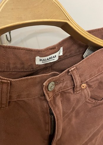Düğmeli, pastel kahverengi süet kumaştan, bol kesim midi uzunluğunda kadın pantolon. Günlük sokak stili için uygun, baskılı detaylara sahip.