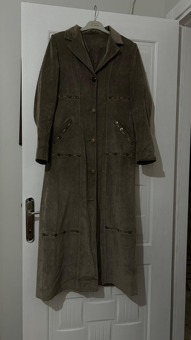 Düğmeli Kadın Süet Uzun Kahverengi Kaban
