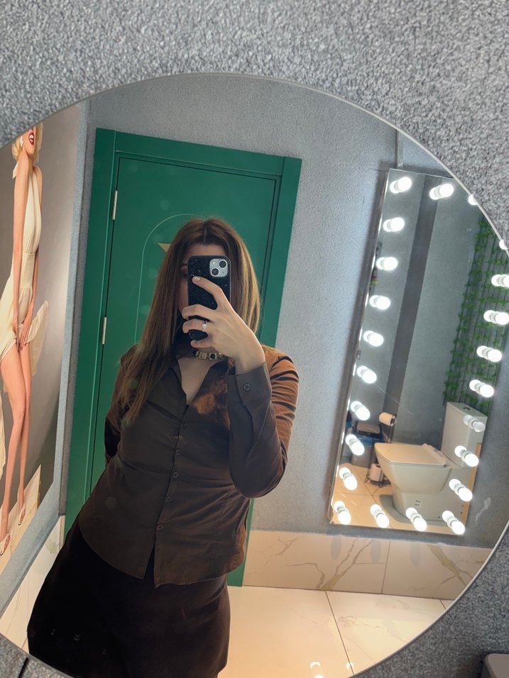 Düğmeli Kahverengi bağlamalı gömlek
