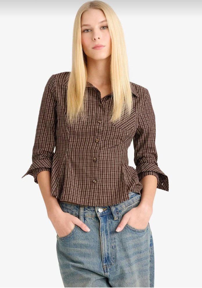 Düğmeli Kahverengi Denim Kadın Gömlek