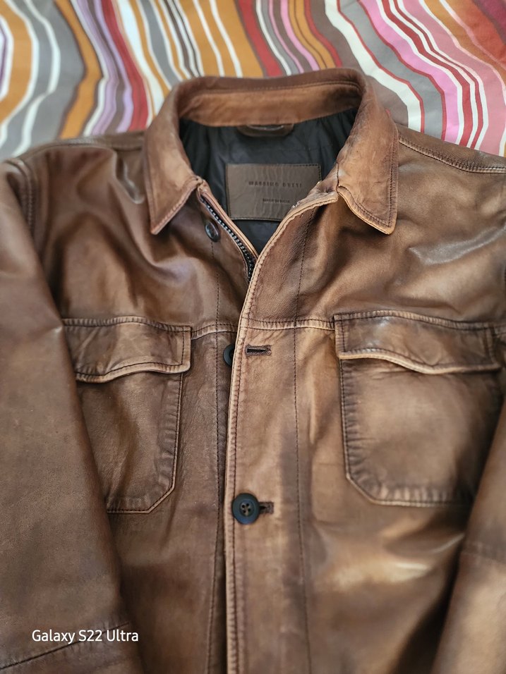 Kahverengi parlak deri erkek ceket, düğmeli, kesik yaka ve uzun kolludur. Günlük rahat kullanım için uygundur.boy 73, koltuk altı 58-60, kol 67 cm.✨