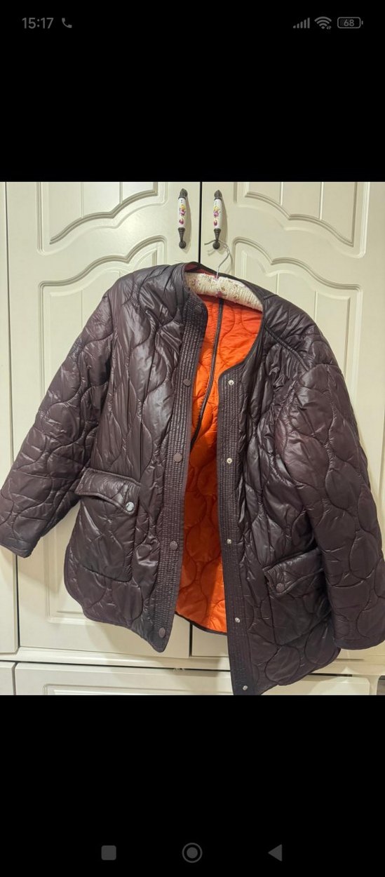iade yok acıklamyı dıkkatlı okuyun lütfenKahverengi deri kadın ceket, düğmeli ve bol kesimdir. Uzun kollu, kesik yaka ve normal midi boydadır. orjınal resımde göründüğü gıbı sıyahlık var arka kısmında dugmelrın de renk acılması var