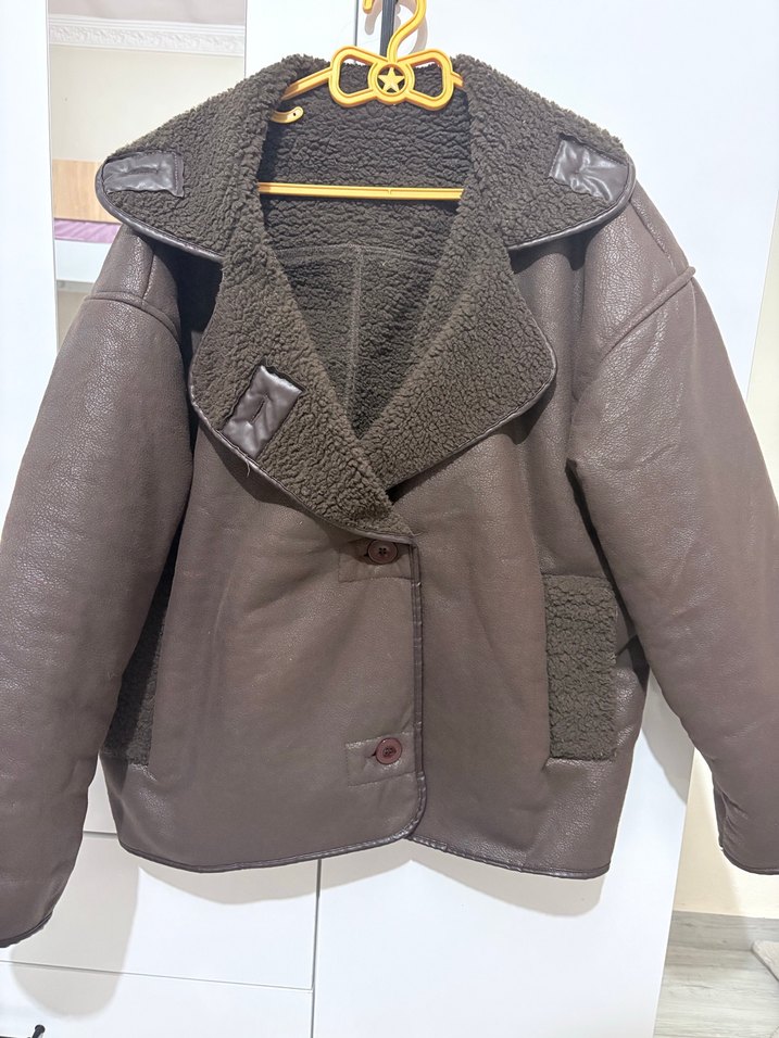 Tertemiz deformesiz 2 defa giyildi. Düğmeli kahverengi deri ceket, notched lapel yaka ve uzun kollu. İç kısmı yumuşak ve sıcak tutan dokulu kumaşla kaplıdır. Midi boy ve regular fit, günlük sokak stili için uygun.