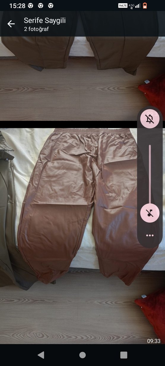 Düğmeli Kahverengi Deri Kadın Pantolon
