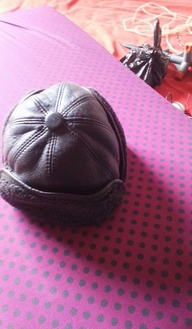 Düğmeli tasarıma sahip koyu kahverengi deri kadın şapka, yumuşak astarı ile rahat ve eski tarz bir görünüme sahiptir.