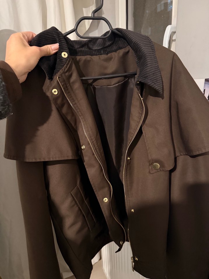 1 kez giyildi işimden dolayı kombin yaptıktan sonra satışa koyuyorum sorunsuz sıkıntısızdır . Düğmeli, kahverengi deri hamile ceketi, notalı yaka ve uzun kollu. Midi boyu ve bol kesimiyle günlük sokak stiline uygun.