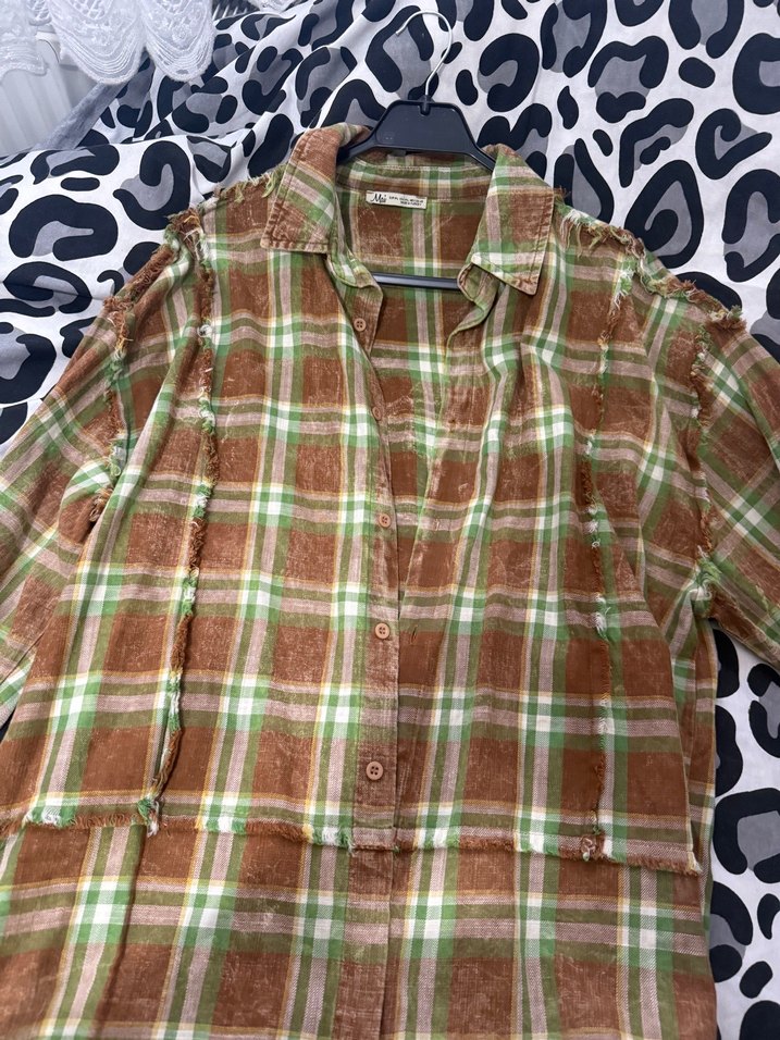 Düğmeli Kahverengi Ekose Bohem Kadın Gömlek