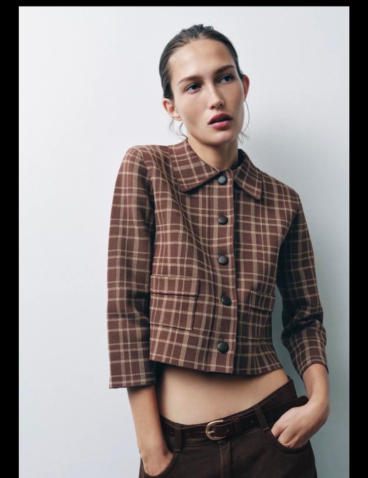 Düğmeli Kahverengi Ekose ceket hırka zara