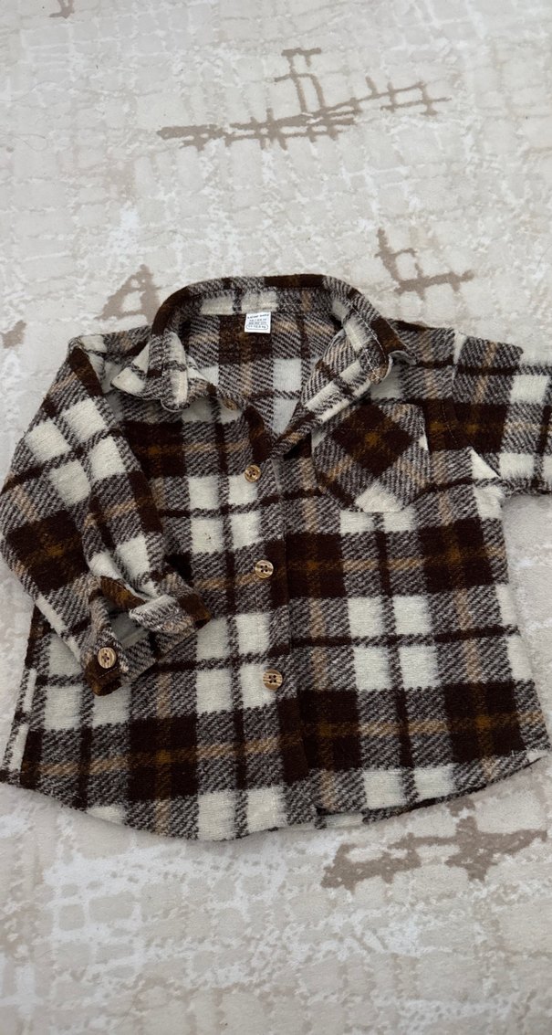 Düğmeli Kahverengi Ekose Erkek Çocuk ceket gömlek