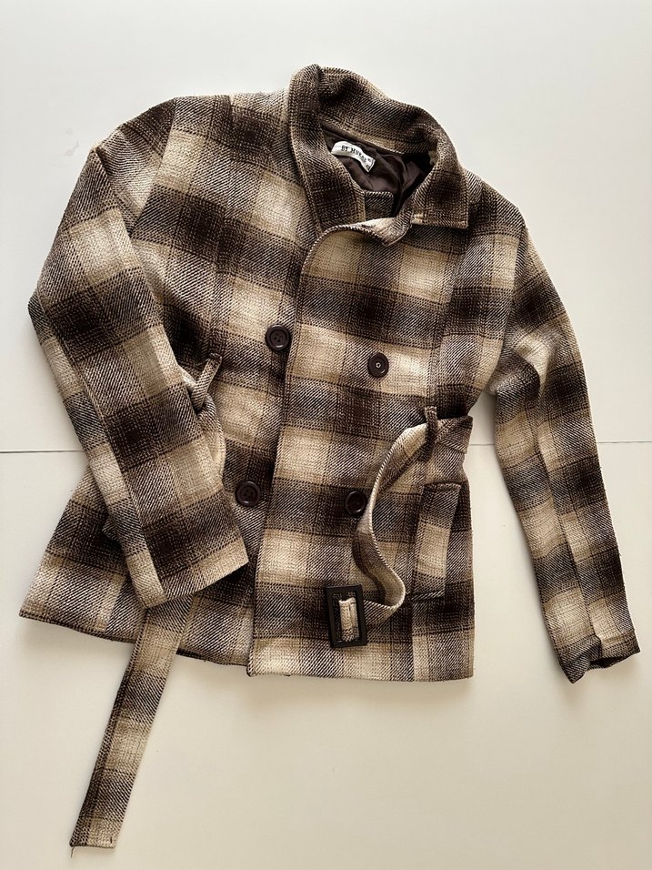 Düğmeli Kahverengi Ekose Kadın Kaban