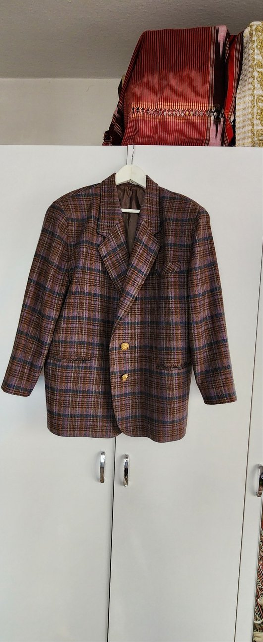 Düğmeli Kahverengi Ekoseli Kadın Blazer Ceket. Vintage ürün,...