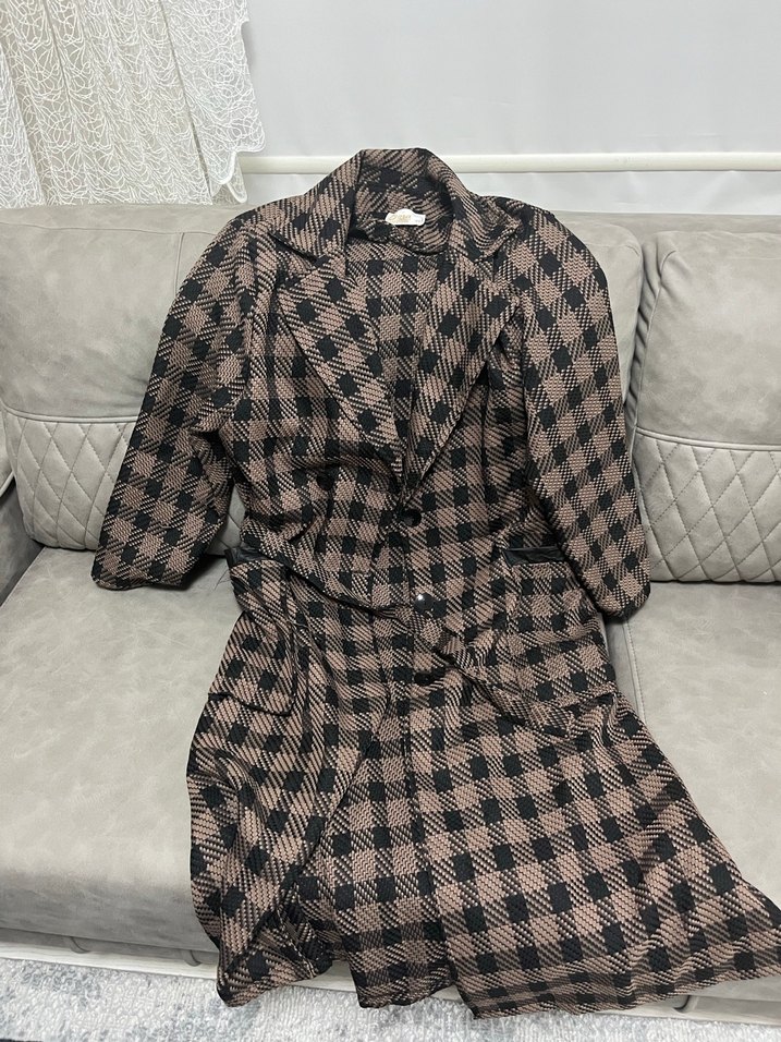 Düğmeli Kahverengi Ekoseli Kadın Uzun Kaban