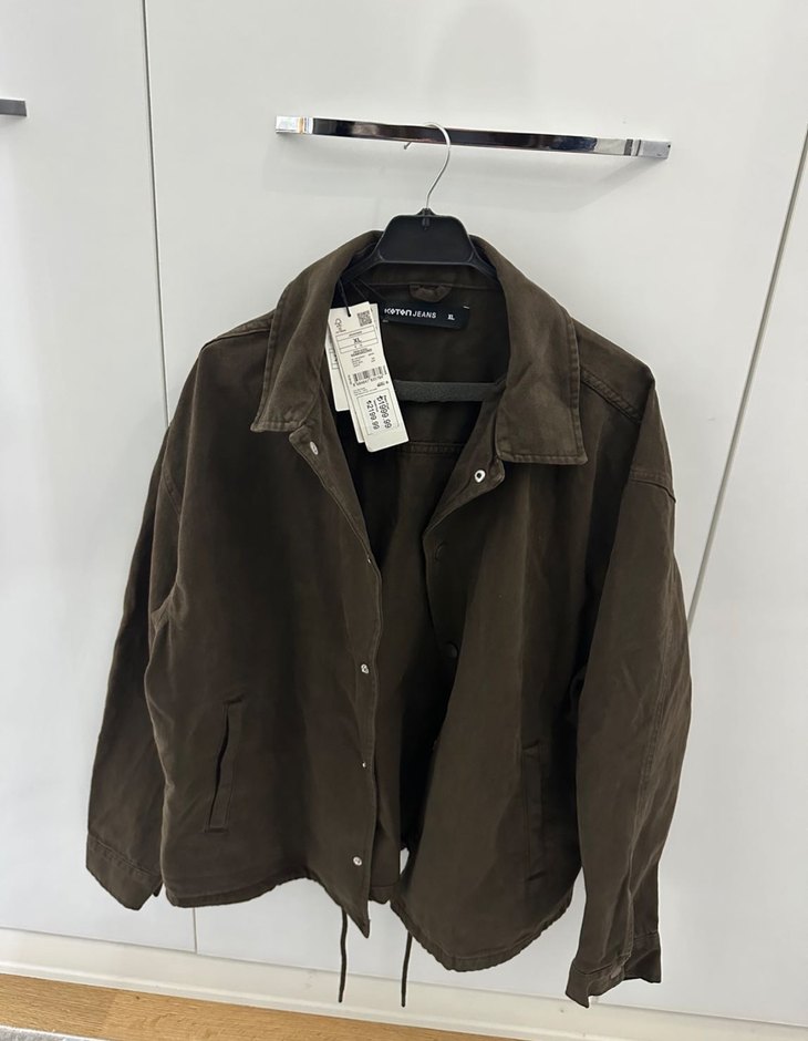 Uzun kollu, düğmeli ve kesik yakalı kahverengi erkek ceketi. xl beden göğüs ölçüsü 62 cm yeni sıfır etiketli